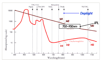 비교내용제모에 가장 적절한 멜라닌 흡수도를 가지고 있어 가장 안전하고 효과적으로 제모를 할 수 있습니다.