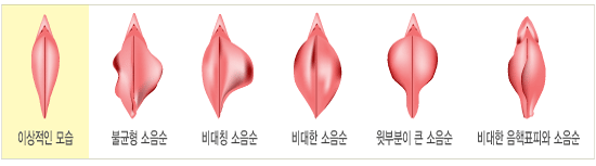 소음순이란, 질 입구 양쪽에 늘어져 있는 해면체 조직의 날개 모양 구조를 말합니다. 소음순은 보통 20대 초반에는 작고 핑크빛을 띄는 경우가 많지만 성관계와 자위행위, 출산 등의 요인으로 모양과 색깔이 변화하게 됩니다. 이때 소음순은 미용상 좋지 않고, 성관계 시 성감을 떨어뜨리는 원인이 됩니다.